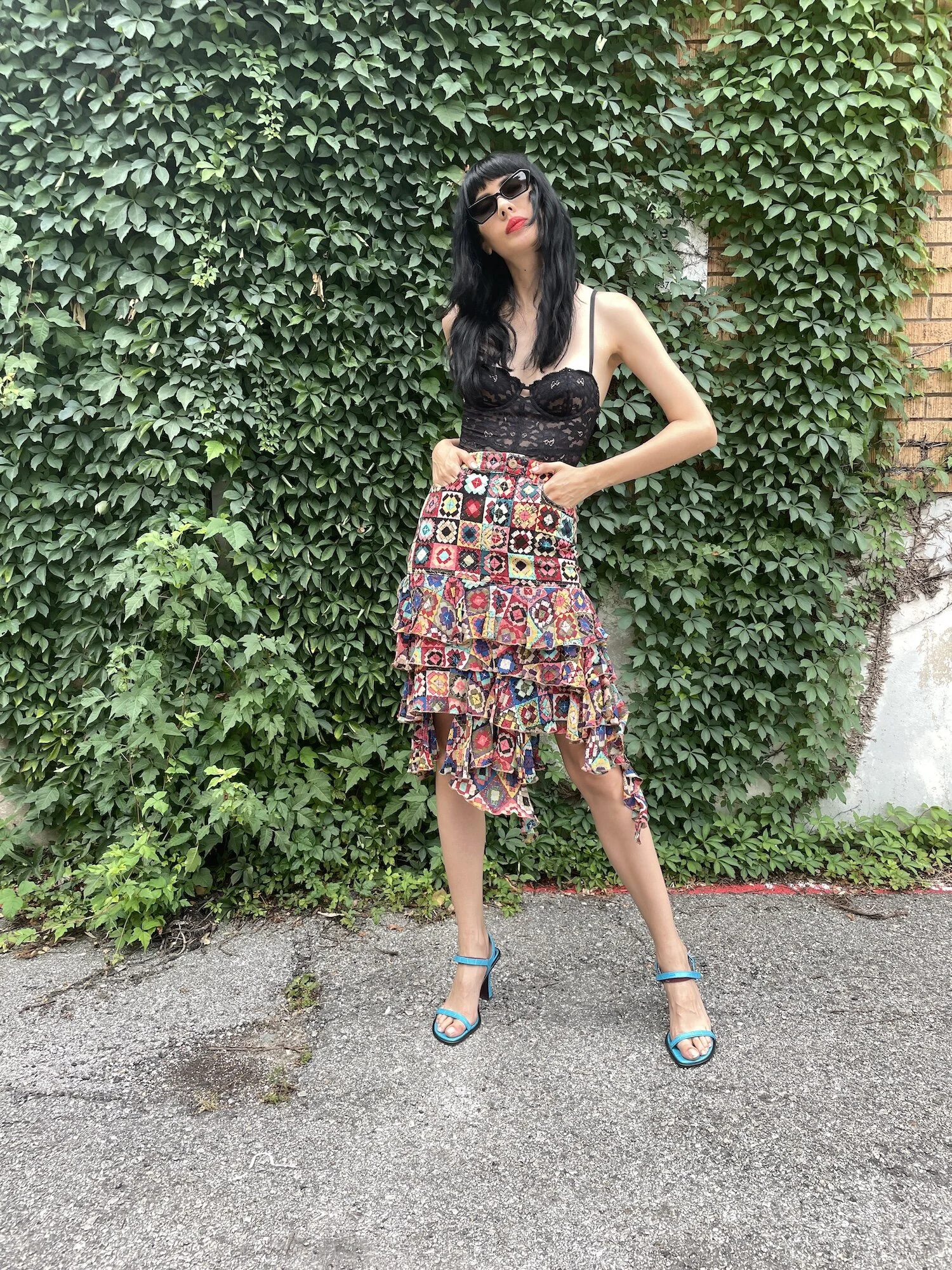 - Denim skirt w/ silk ruffles