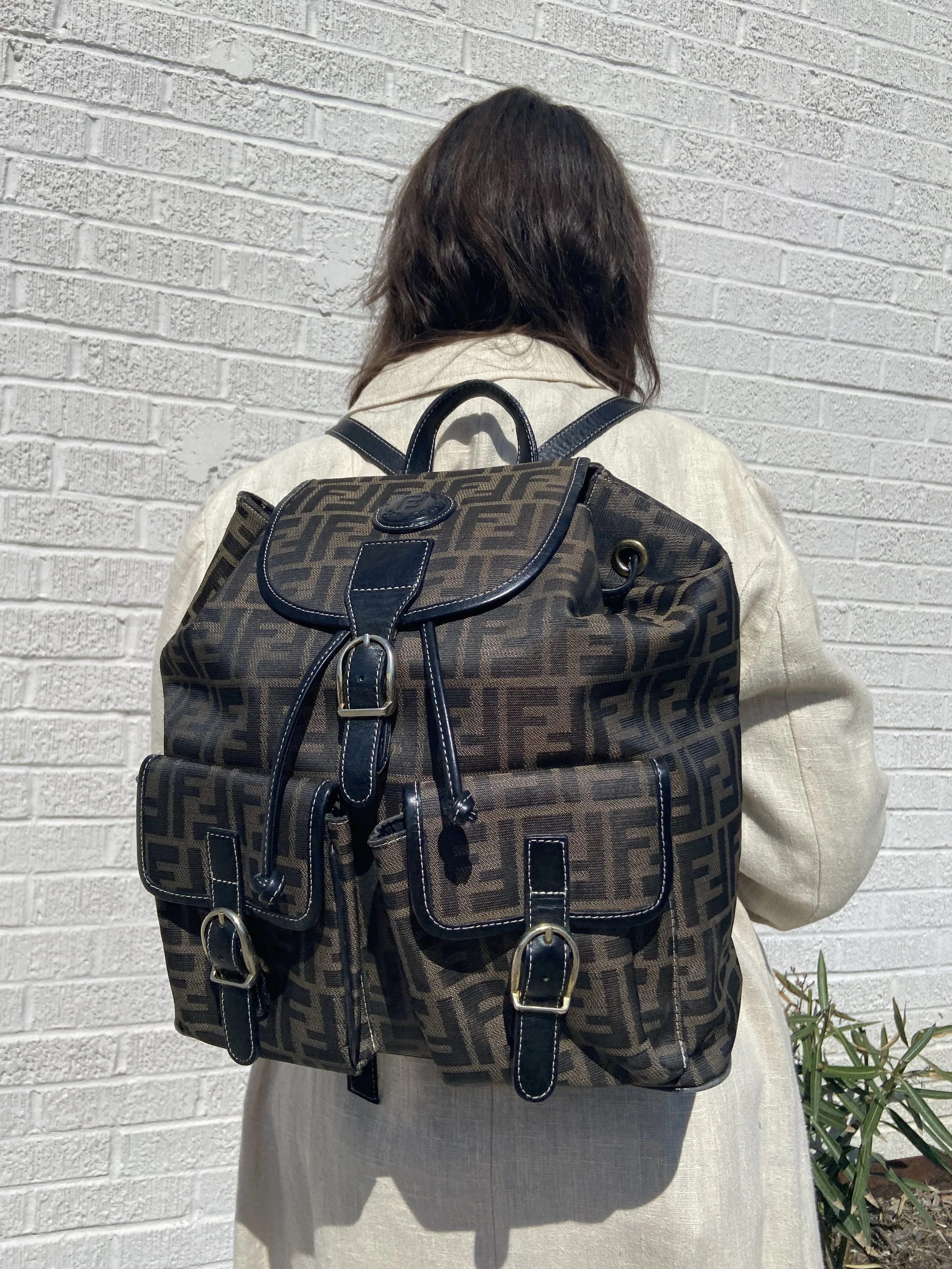 We know you love your Prada backpack but we promise you’ll love this Fendi backpack even more! The emblematic Zucca print is sure to grab passerbys attention while the subtle black leather detailing are the classic craftsmanship we expect from the beloved brand. There is a drawstring opening with a front flap magnetic closure for easy excess inside. The interior boasts a zippered pocket and the straps are adjustable for a variety of heights. Be top of your class with A+ bag!