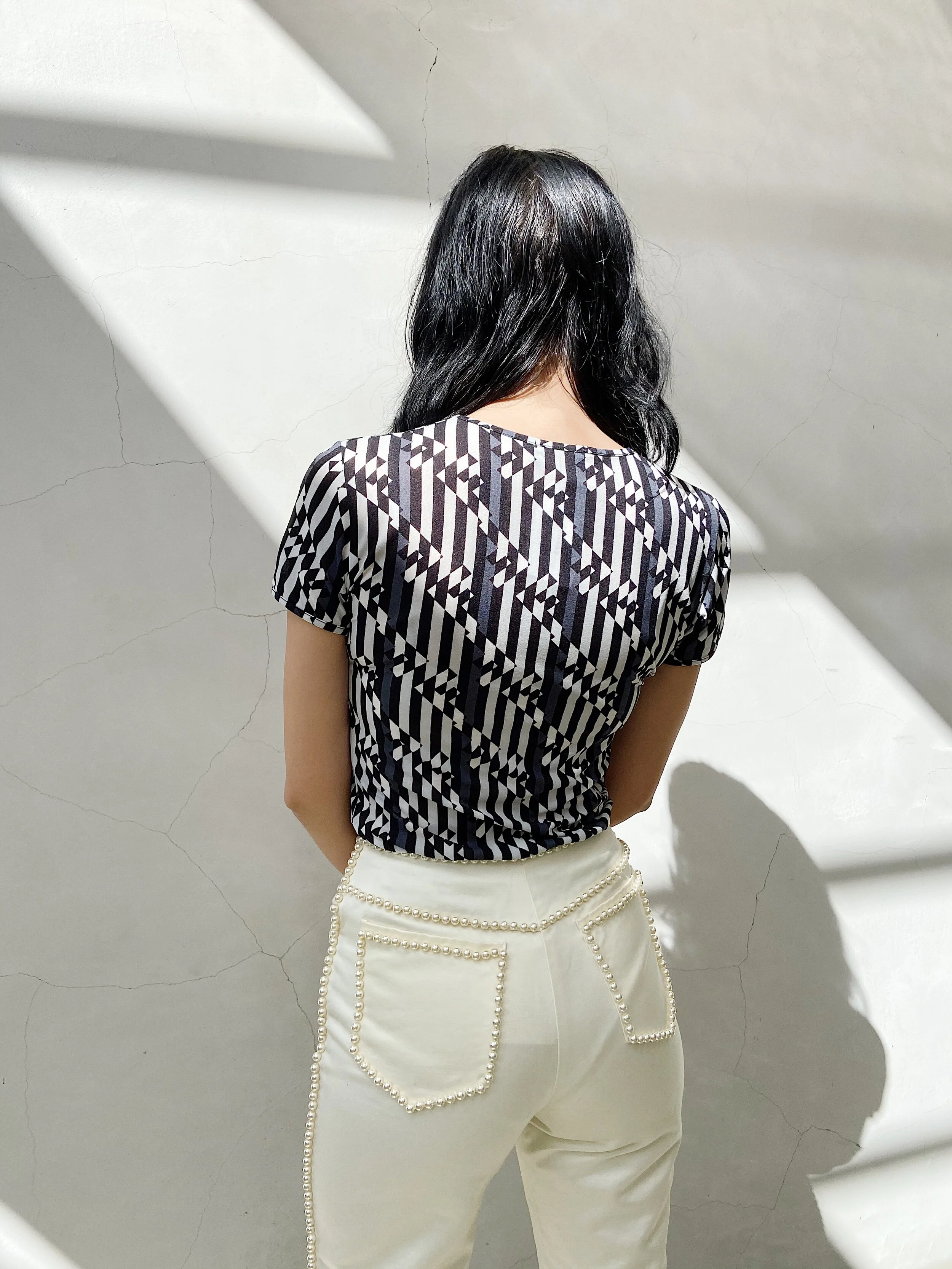 This 90s Fendi tee is hypnotizing. Classic “FF” logo in grey scale color way. Signature t-shirt silhouette with no closures in stretchy synthetic blend fabrication. This top is great on it’s own but also would be great layered for the perfect pop of print.