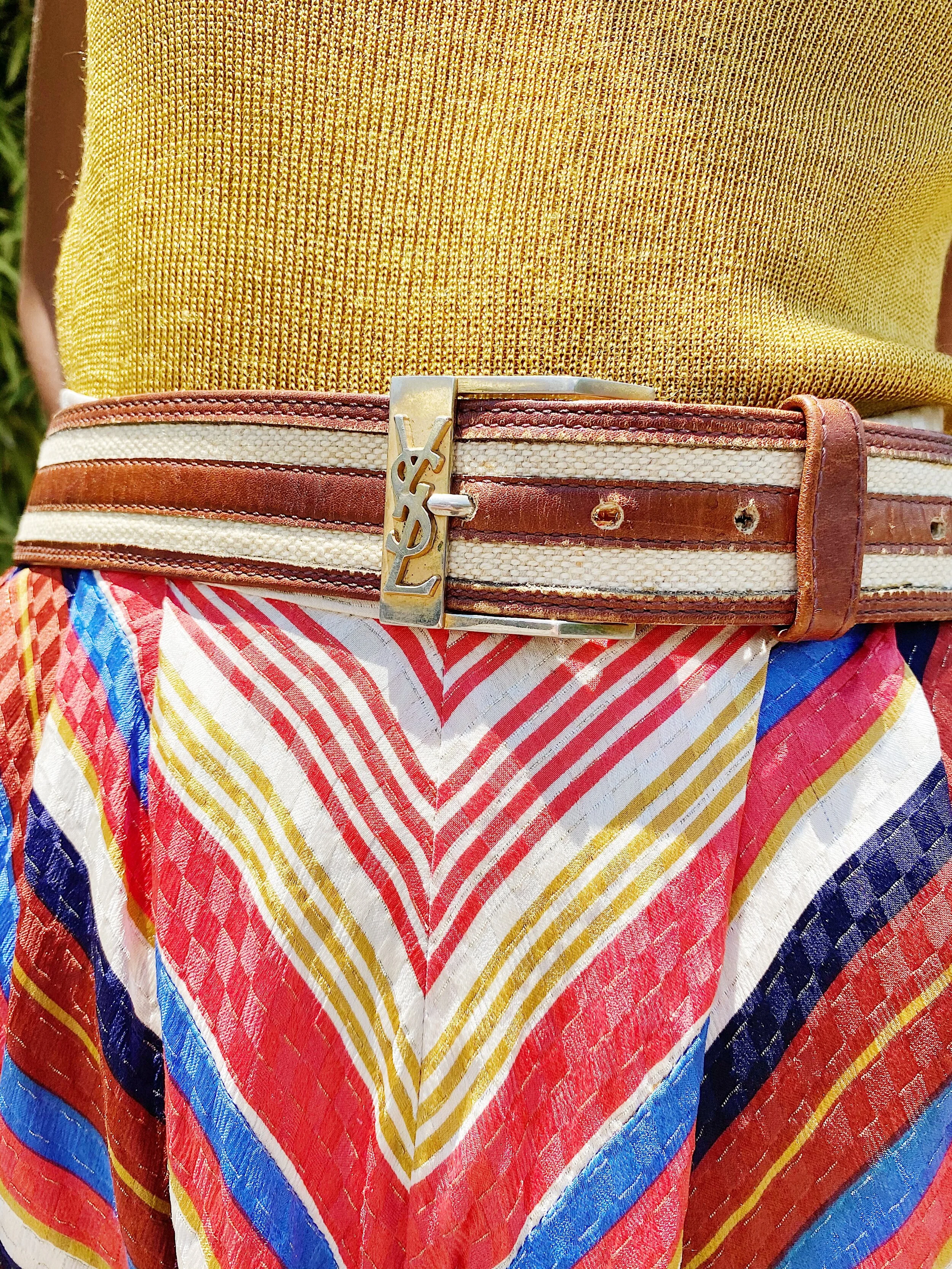 This Yves Saint Laurent belt is the perfect leather and raffia combo. Gold square YSL logo belt buckle is the most amazing finishing touch. This belt can easily transition from summer to fall. Don’t miss out on this everyday wear belt.