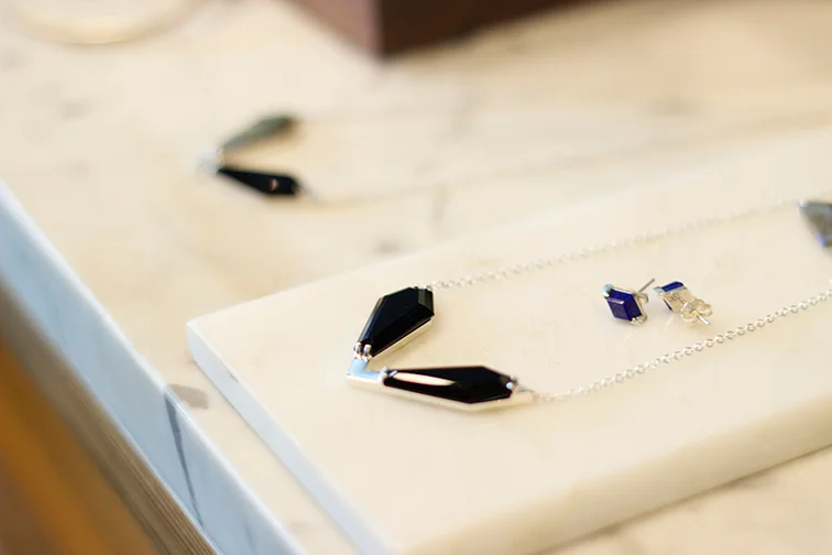 AEA Rhombi earrings in sterling with onyx $310. Also available in lapis.