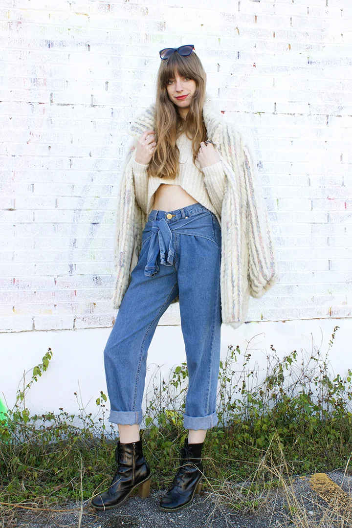 We asked Alex to style this rad 80s sweater coat and she mixed it with these awesome Opening Ceremony jeans and cropped Thakoon Addition sweater from our sister store MOSS.