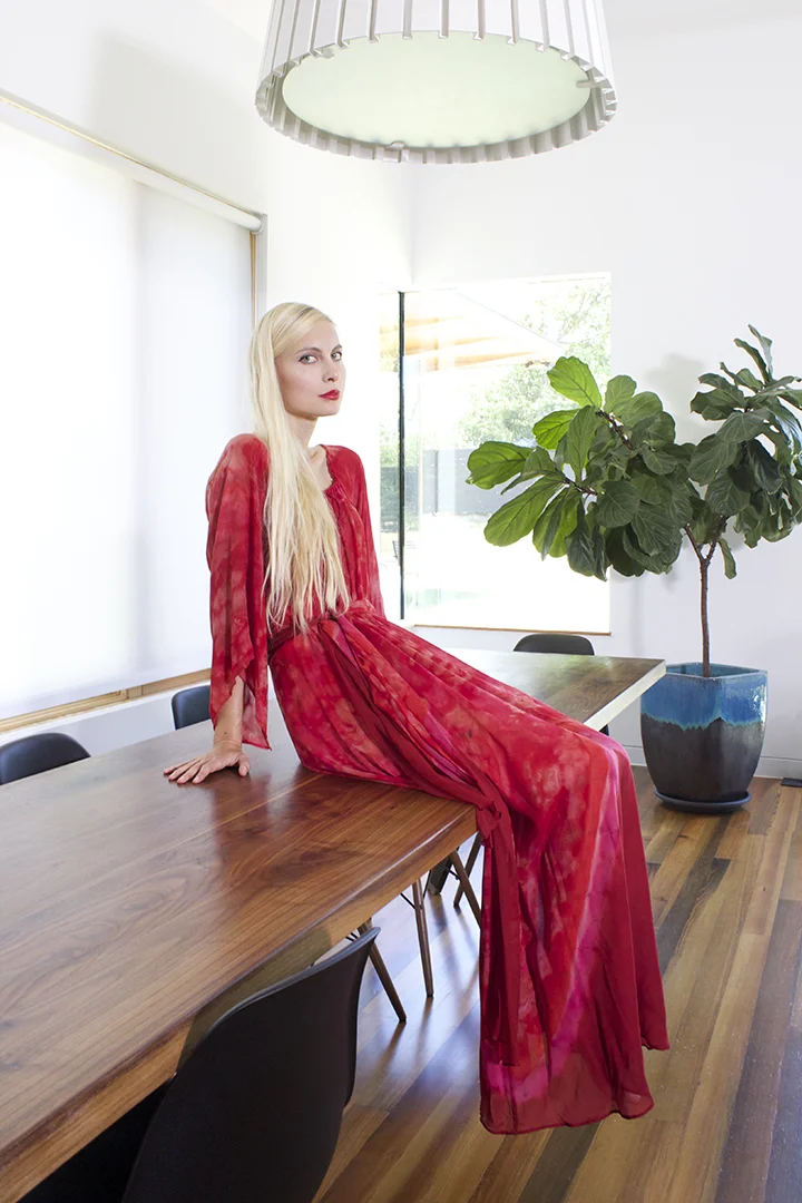 We are so in love with this 1970s hand-dyed red silk dress! To shop it, click here. Model Rachel Baker. Photography Katy Shayne. Styling Masha Poloskova.